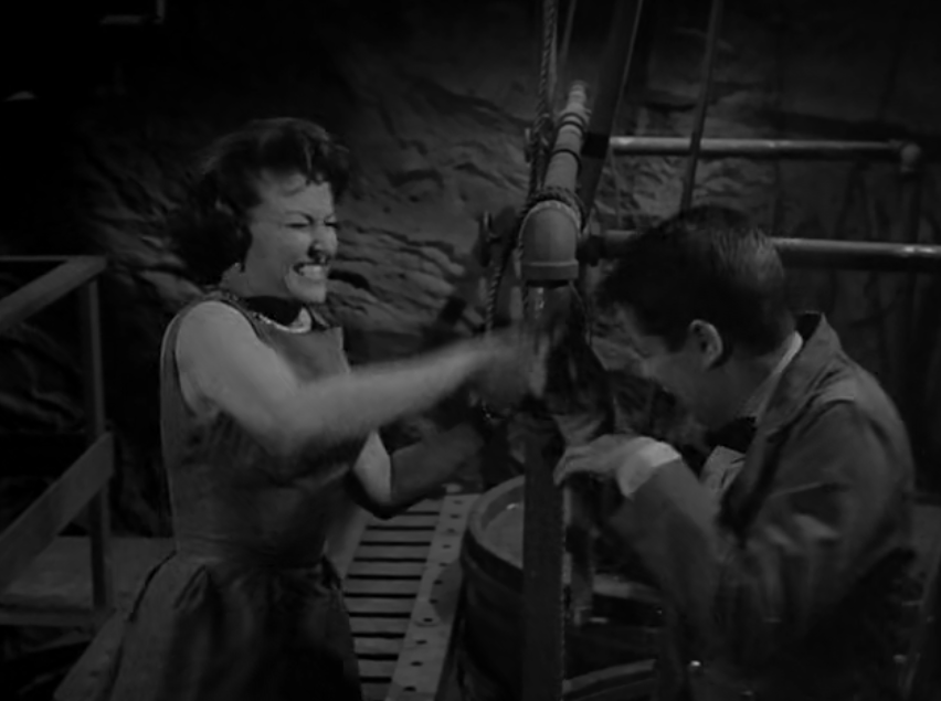 She brings her Aunt Minnie (Dunnock), who acts as guardian of this lost waif, to her humble apartment to let her into her secret life as a simple girl. But Minnie is skeptical about Grace’s orderly ruse. Dunnock is proficient in portraying women with a classy reserve, and in Beyond the Sea of Death, she wields her protective essentiality like a white glove.