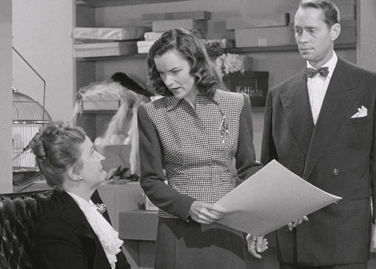 Vera Brandon arrives with her suitcase, and Louise introduces her to her friend, Mrs. Grace Thorpe. In a telling moment, explains the topic of her doctoral dissertation to Grace, who looks on blankly and then turns and invites Louise to a fashion tea. Vera is portrayed as a slightly older, educated woman, who does not fit in among the vapid suburban housewives.