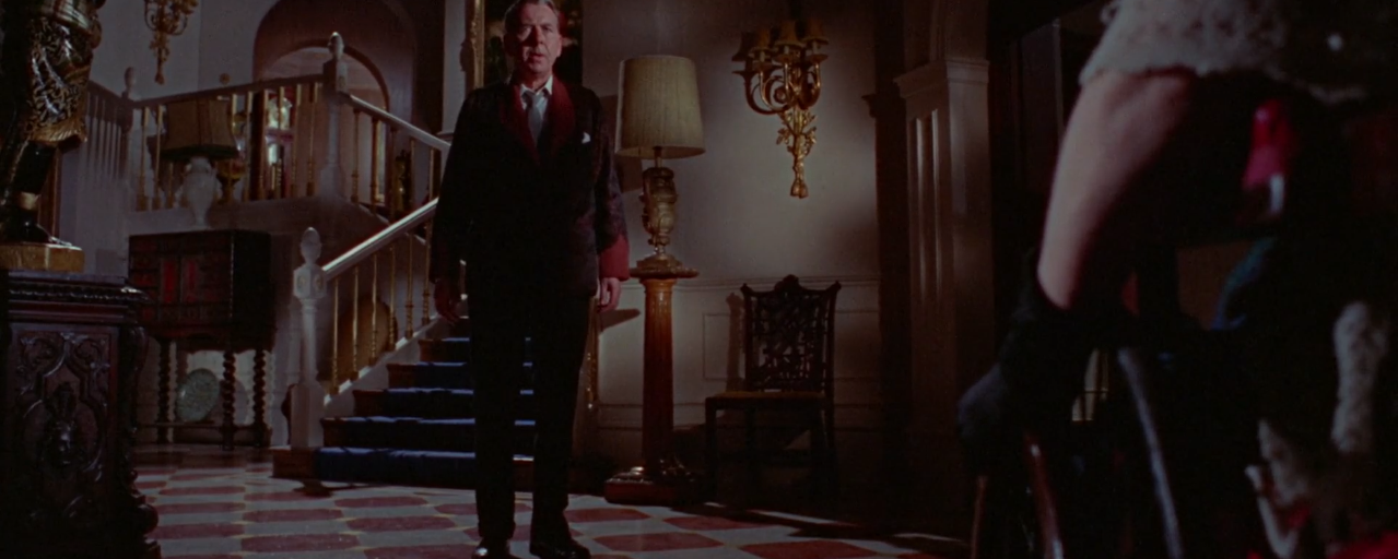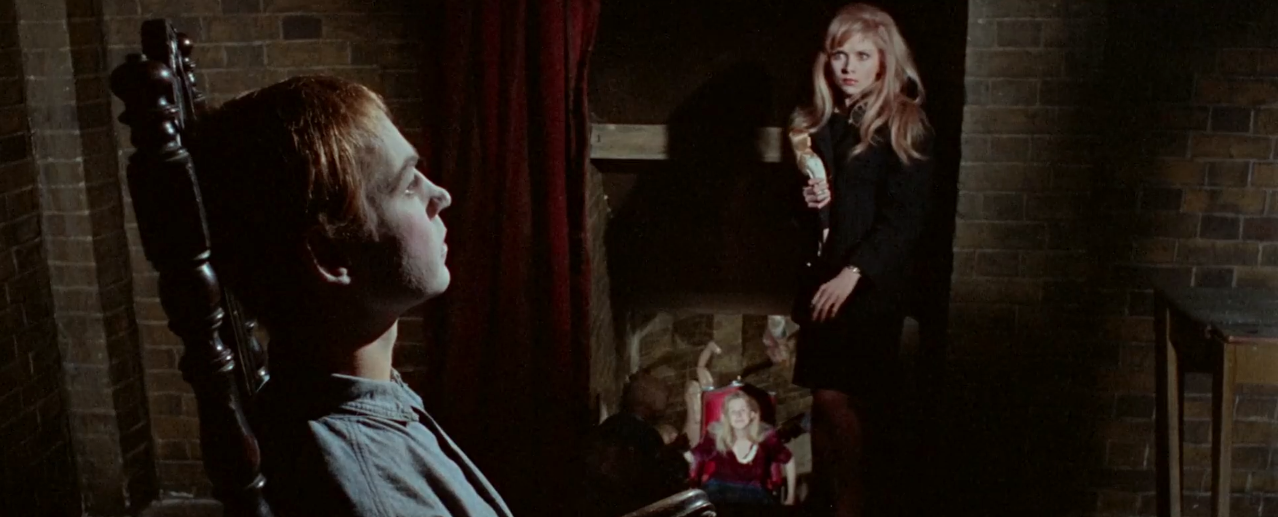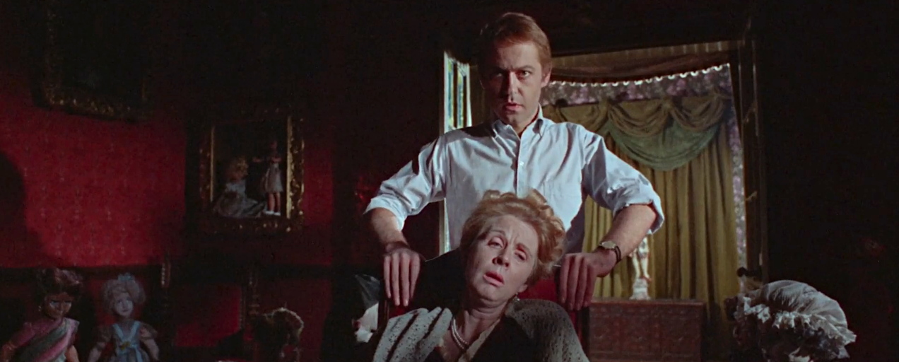 Von Sturm’s doting son named Mark, adds an extra tinge of peculiarity to the plotline. Mark (John Standing, a prolific British television actor known for his roles in “King Rat” (1965) and “Torture Garden” (1967)) is her only company next to her dead staring, glass-eyed children.
