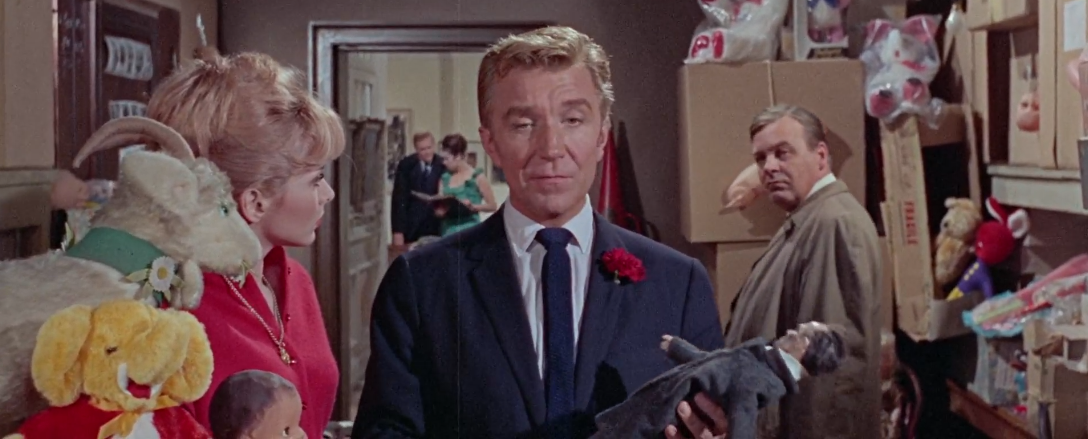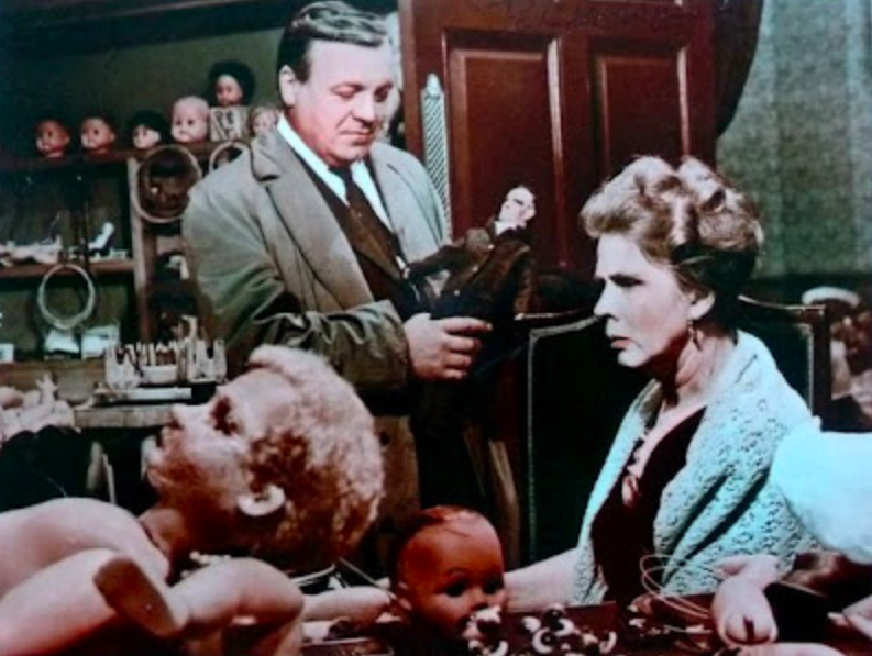 One of the best performances is the cameo by Colin Gordon as the disgruntled Dr. Glyn and Harold Lang as the quite theatrical toy shop owner Briggs (Roy Castle’s agent in Dr. Terror’s House of Horrors) who wages war against modern toys – he exclaims with a bit of camp, “All bombs and rockets – aggressive plastic in rather vindictive colors -Personally I wouldn’t want to sell anything you couldn’t cuddle.” Also part of the cast is Alexander Knox as Louise’s disapproving father, Frank Saville. And murder victim Martin Roth is played by Thorley Walters.