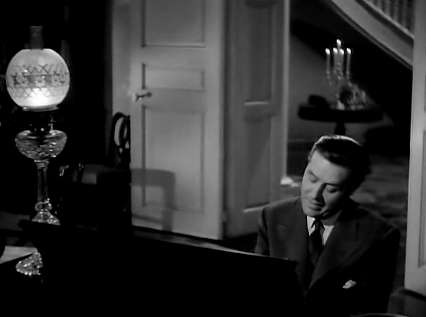 In this moment, Lewis Allen’s masterful control of mood and Lang’s camera capture Milland’s expression as it transforms. The light-hearted amusement rapidly fades from his features, replaced by a growing sense of unease.