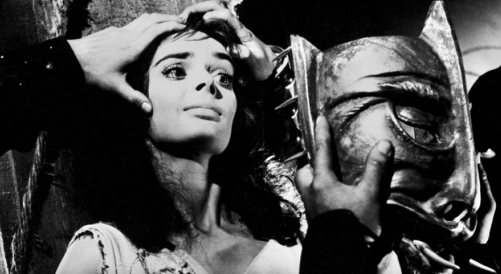 Asa Vajda’s body is discovered in a crypt by Dr. Choma Kruvajan (Andrea Checchiand) and his assistant, Dr. Andrej Gorobec (John Richardson- Tumak in One Million Years B.C. 1966). While examining her corpse, Kruvajan accidentally breaks the glass panel covering her face and cuts his hand. His blood drips onto Asa’s body, which initiates her reanimation. The process of reanimation is gradual and a stunning moment in classic horror. Asa uses her supernatural powers to contact her lover Javutich (Arturo Dominici) telepathically, who then rises from his grave. Javutich, wearing the spiked death mask, emerges as a terrifying figure clawing his way up from the ground. He serves as Asa’s accomplice in her quest for revenge against her brother’s descendants.
