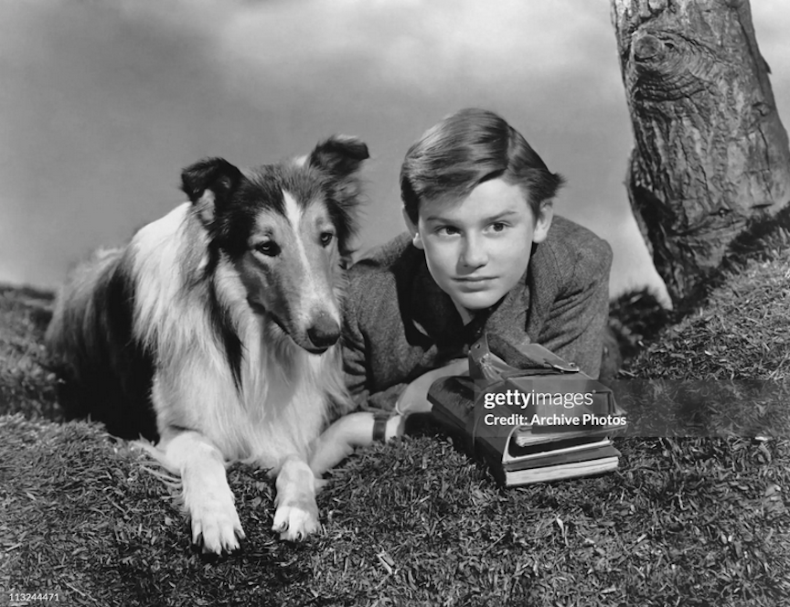 Actor Roddy McDowall with Lassie in the 1943 film Lassie Come Home. (Photo by Archive Photos/Getty Images).