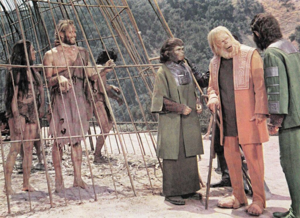 As Cornelius and Caesar in the original Planet of the Apes film series (1968-1973): McDowall became a fan favorite in this science fiction franchise, portraying different ape characters across multiple films, Galen in the Planet of the Apes television series: He continued his association with the franchise in this short-lived spin-off.