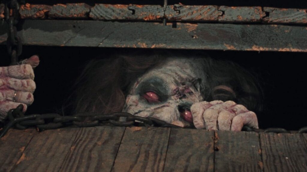 The Evil Dead’s low-budget effects, courtesy of Tom Sullivan, are a glorious testament to DIY horror: stop-motion melting faces, rubber limbs, and geysers of viscous, brightly colored blood that somehow make the grotesque both horrifying and hilarious simultaneously.
