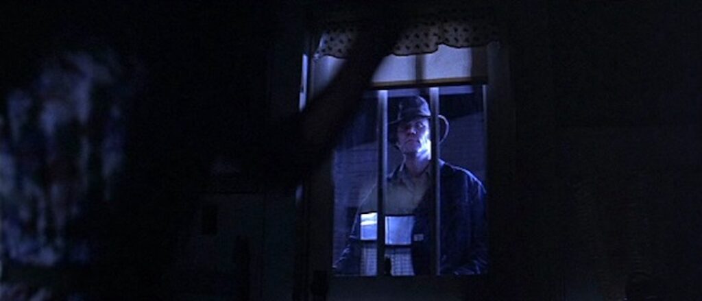 The low-budget 16mm film stock used by Pierce conveys a rough, gritty quality to the images, which not only grounds the story in a specific time and place but also blows up the sense of unease. A key element of the film’s visual identity is its grainy texture. The graininess makes the violence and suspense feel like one of those memories that hits you in … like a memory that flickers in and out, rough around the edges, you almost feel it under your skin, as if the camera is a silent witness to real events rather than an outsider to what is happening. We are literally watching the murders as they happen. This “grimy little flash” of the original film, as later critics have called it, is part of what gives The Town That Dreaded Sundown its lasting power—it feels unvarnished and lived-in, never slick or showy. Pierce’s work never feels overproduced or overanalyzed.