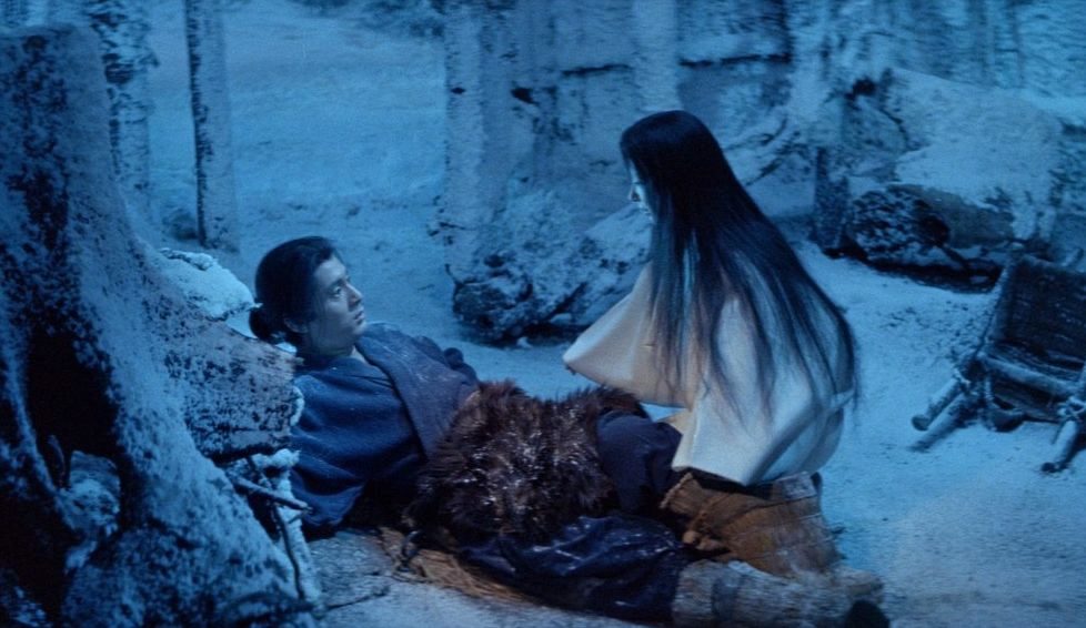 Takemitsu’s score and sound design are as crucial as the visuals—silence stretches, punctuated by the snap of bamboo, the crack of ice, or the ghostly echo of a biwa, creating a sense of ma, the Japanese aesthetics, that refers to the concept of “negative space,” “gap,” or “pause” those haunted spaces between sounds.