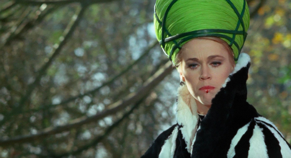 The story’s roots lie in Poe’s tale of the same name, an early Gothic masterpiece that explores themes of inherited sin and supernatural vengeance, whispering through the film. Yet, Vadim’s adaptation is bathed in a kind of extravagant grand theatricality, and gives us a world that’s beautiful, corrupt, and teetering on the edge of collapse, mirroring the countess’s moral decay and decadent indulgence. This decadence is vividly portrayed through scenes that exude a sense of uninhibited excess and dark, sensual power. Fonda’s character, Countess Frédérique, reigns over her vast estate with a cruel and self-indulgent spirit. The imagery of hedonism comes alive in her lavish surroundings, where she lives free of restraint, reveling in orgies and commanding her servants with icy detachment.