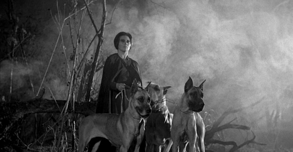 And yes, there is a compelling visual symmetry between Barbara Steele’s unforgettable image in Black Sunday 1960, standing amidst misty ruins with fierce dogs leashed by her side, and the eerie apparition with haunting black eyes in The Curse of the Crying Woman, portrayed by Rita Macedo as the sinister witch Selma, who similarly commands her spectral hounds within a desolate, atmospheric setting. Both sequences evoke a potent blend of Gothic allure and supernatural dominion, using the motif of women exerting eerie control over dark, menacing forces. This parallel underscores a shared cinematic language of fear and mystical power that defines these classic horror films.