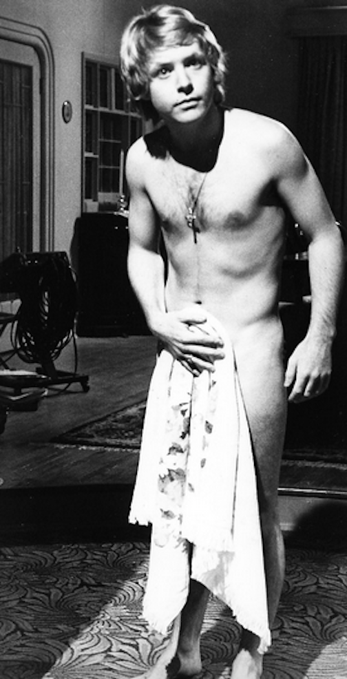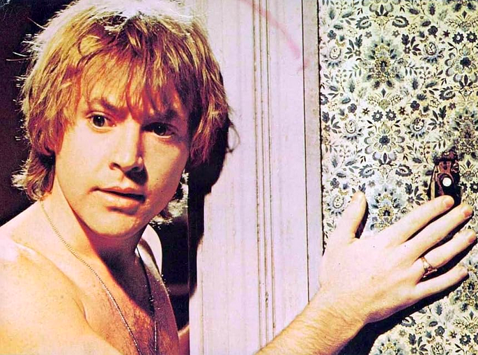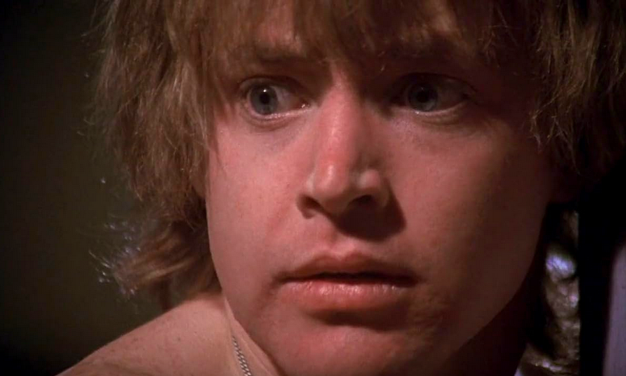 Michael Burns has an impish face. He’s a highly underrated actor of the ’70s. In Cold Day, his range is truly utilized in neo-Gothic urban fashion. His role in The Mad Room (1969), released that same year, starring Shelley Winters and Stella Stevens, didn’t really give him the environment to expand his acting prowess. He’s got boyish good looks. Almost Cherubim-like. We see his naked bum a lot, prancing around the apartment with only a bath towel and his silent body language. Doing a little Chaplinesque pantomime to convey his spirit, as he is acting mute for Francis. He exudes a hint of dangerous quality yet manifests a gentleness. Perhaps in his mind, he at first romanticizes in a dreamy fashion that he is an Oliver Twist who has stumbled onto something good. A street urchin who has been taken in by a seemingly kind yet odd woman. And so he’s playing along with the game, all the time realizing that Sandy Dennis’s character is not quite right. She talks incessantly about things that aren’t relevant. He humors her in an odd sort of sympathetic way.