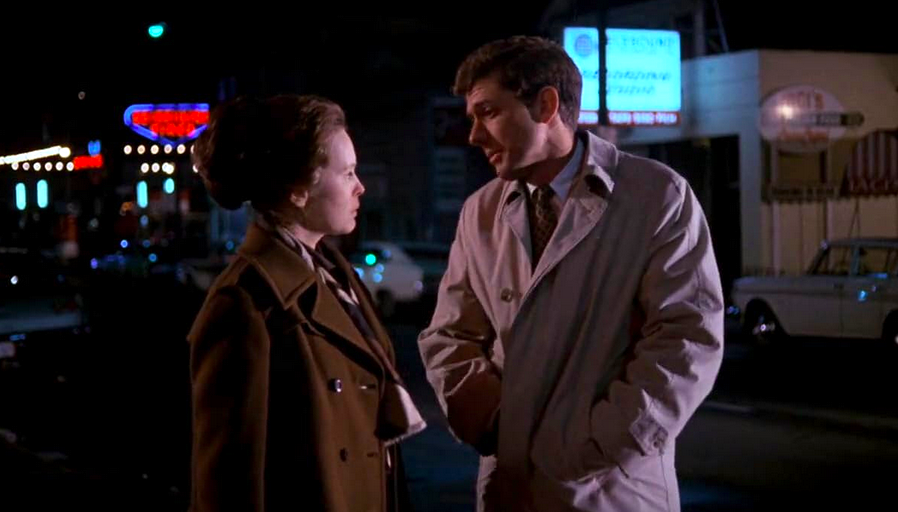 She then proceeds to go to a seedy bar, trying to procure a prostitute as a surrogate for her sexual repression. At the first bar Francis goes to, she sits and watches a girl, beehived and exuding a Mary Quant’s black eyeliner and attitude. Francis approaches her in the bathroom and asks if she’ll come home with her because she has a boy there who needs sex. The girl asks how much, then rebuffs Francis and calls her a pervert. Assuming that the sexual procurement was for herself, a woman, and not someone else. But overhearing the incident, Michael Murphy as The Rounder takes on the task of recruiting a prostitute for Francis. The smarmy character that Murphy plays brings Francis to what looks like an all-night dive diner/lesbian hangout, where all the players in the room are further used to set off an ambiguous puzzle as to whether the prostitute is for her or not. Francis’s sexuality is truly ambiguous in this film.