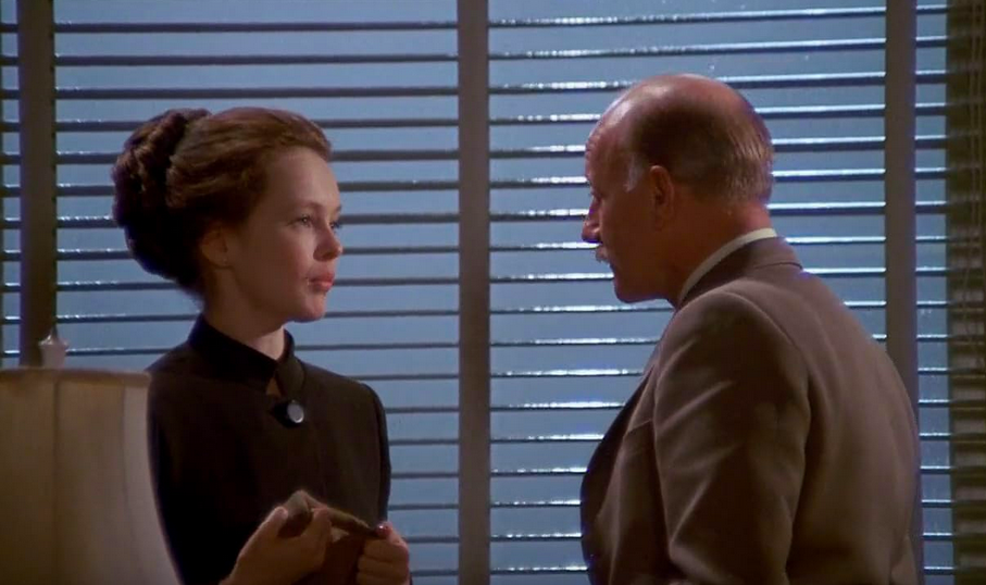 At the same time, Sandy Dennis was quite a young actress of 31; her tightly upturned hairstyle and mannerisms indicate that she is taking on the role her mother once had, presenting herself as an ‘older’ woman.