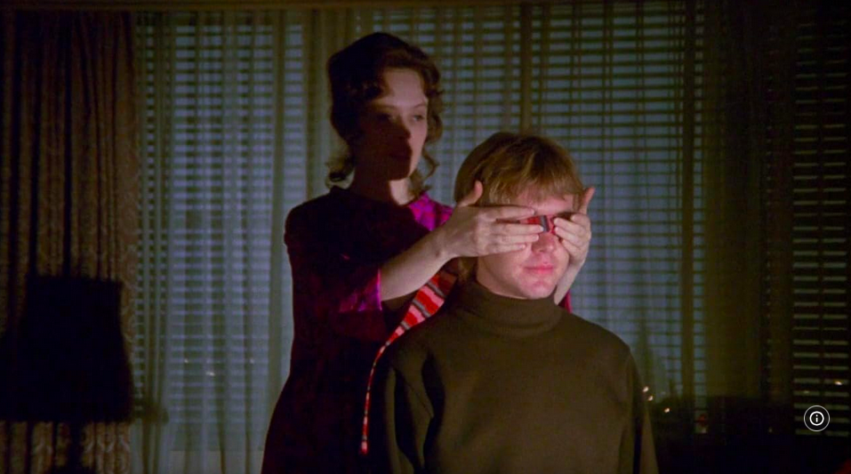 Altman often presents Frances in that iconographic mirror in order to represent her duality—the reflections of the repressed woman and the voyeur who seeks to fulfill her sexual desires. While ‘the boy’ walks around the apartment naked, he becomes an ‘object’ of desire for Francis’s fragile self-control. She is a pathetic, deranged time bomb who will eventually lose all hold on reality.