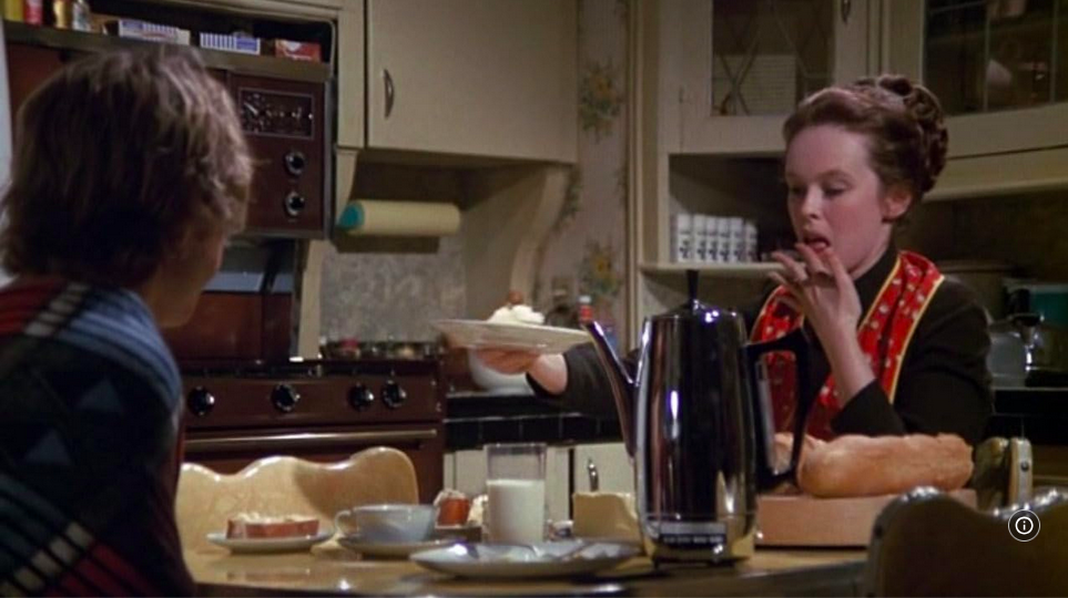 In Peter Shelley’s Grande Dame Guignol Cinema, he observes how Kovacs lenses Frances in shadow as if she is a ‘female monster’ when she asks ‘The Boy’ to stay. This also suggests that Altman presents Frances’s persona as likened to ‘vampirism’ as she wears her hair down at night.