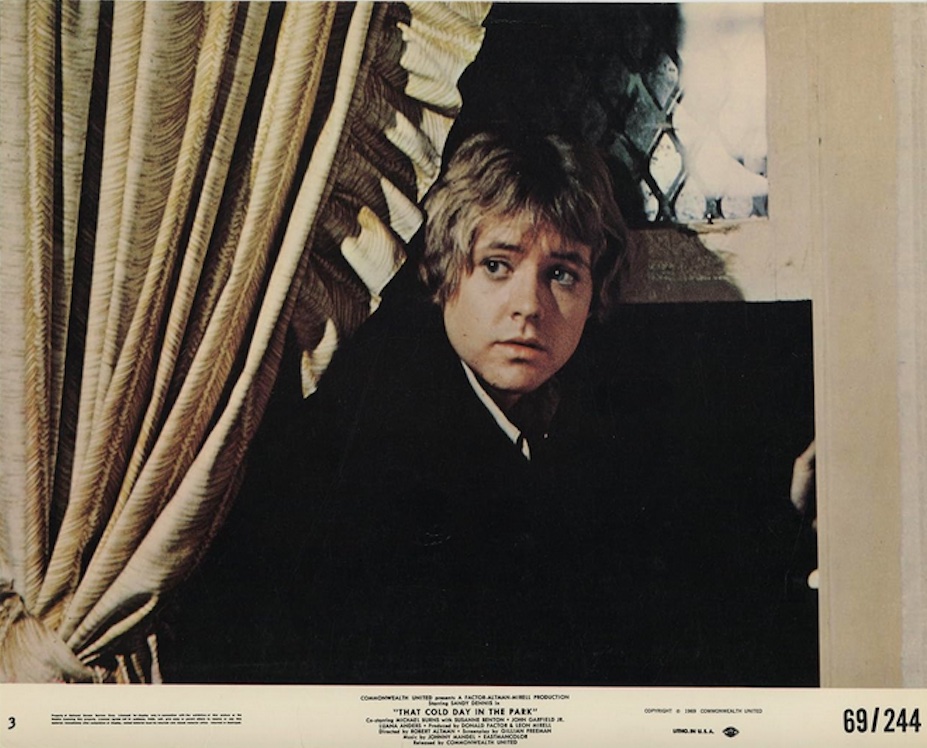 That Cold Day In The Park (1969) is by Robert Altman, an iconic American director (M.A.S.H 1970, Nashville 1975) best known for his very naturalistic approach to plot development in his films. He has a very stylized viewpoint, creating an atmosphere in which the actors’ dialogues overlap. He allowed his actors to improvise their lines, which was a very unorthodox method of filmmaking. He’d often refer to a screenplay as a “blueprint” for the action and cared more about character motivation than the relevant components of the plot. In Cold Day, he uses a more somber monotone dialogue, still informal and intimate, yet not as cluttered with the chatter he uses in his later works.