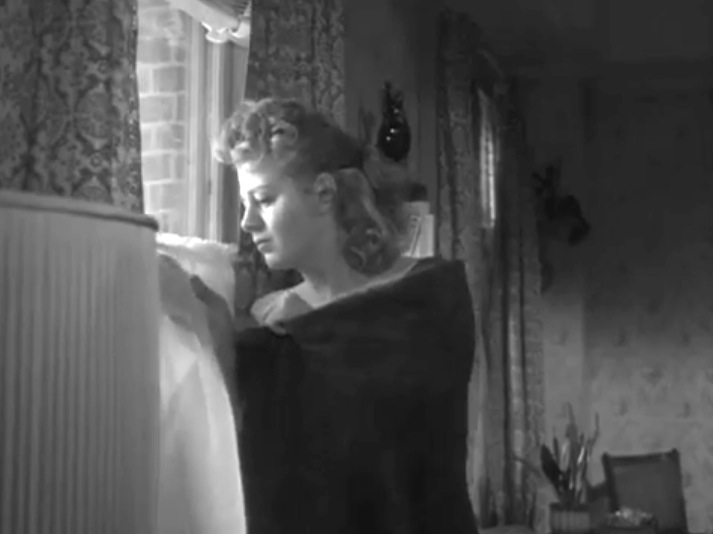 In the film’s most dramatic scene, Scott’s obsession with Peggy sends him into a frightening rage directed at Tod in a fishing boat set amidst the chaotic ocean waters on a stormy night. Ryan brings a dramatic measure of fury that prepares him for the kind of character Nicholas Ray would exploit five years later in On Dangerous Ground (1952).
