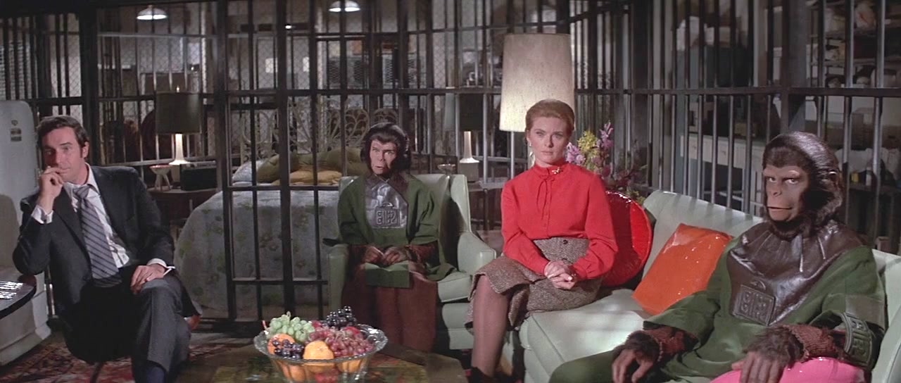Bradford Dillman, Kim Hunter, Natalie Trundy, and Roddy McDowall in Escape from the Planet of the Apes (1972)