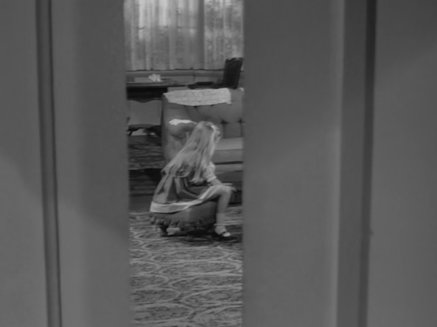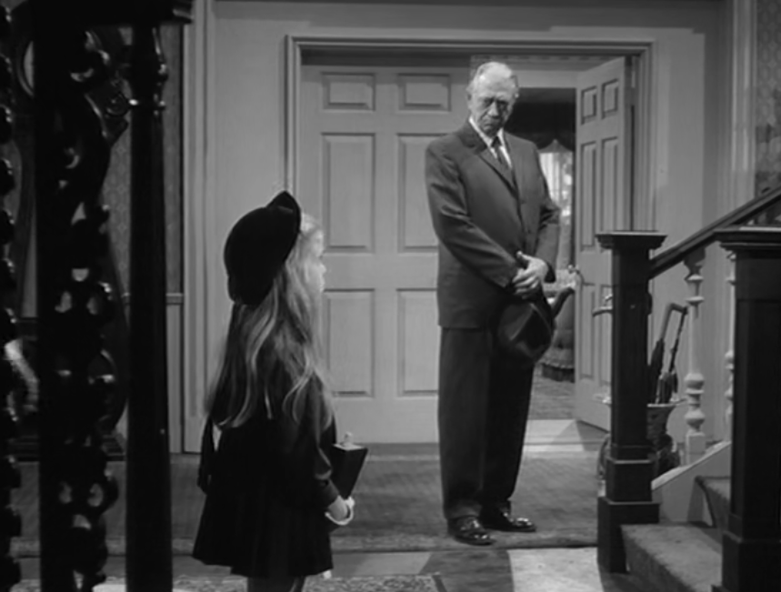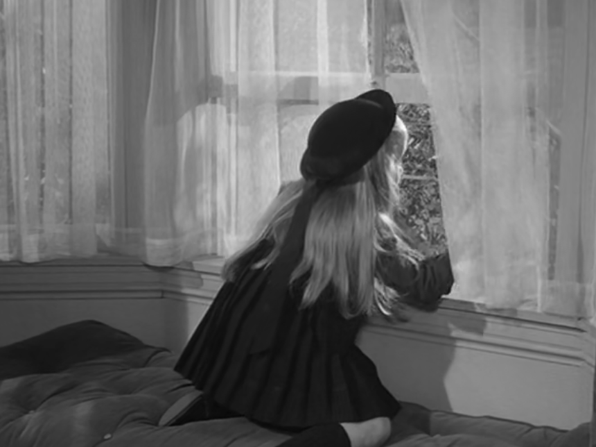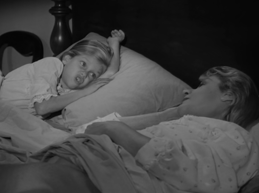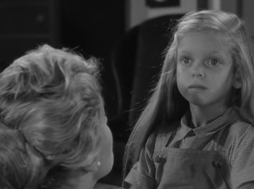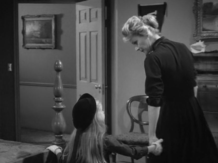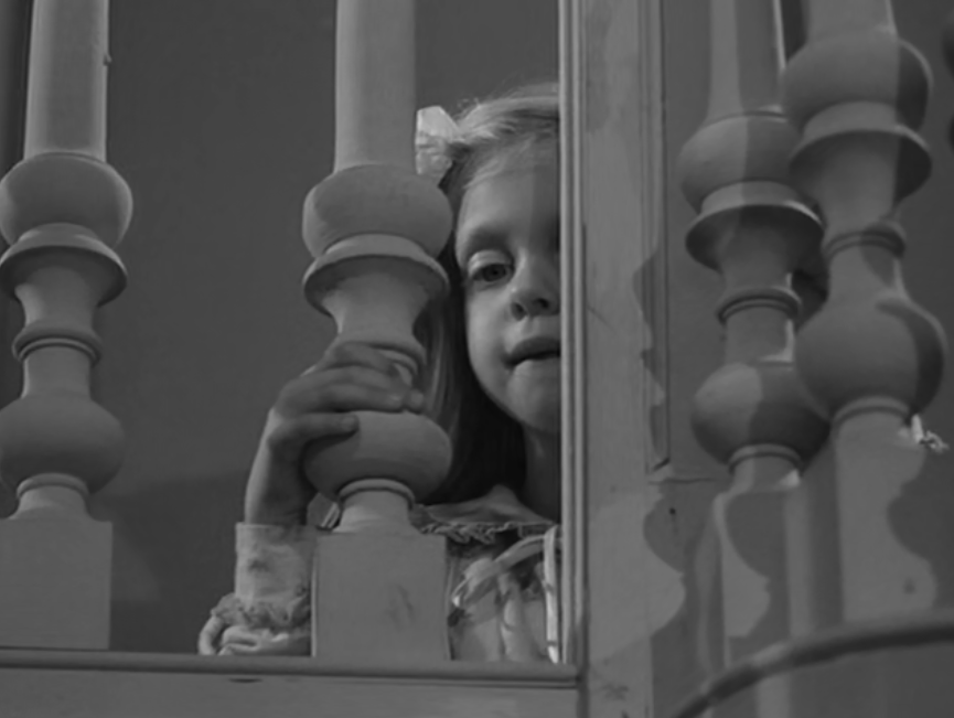 It likely served as the source for The Alfred Hitchcock Hour producers, featuring Grubb’s story “Where the Woodbine Twineth” along with “Return of Verge Likens,” his other contribution to the TV series. The story revolves around Nell and her five-year-old niece, Eva, whose parents are dead. Nell expresses concern over Eva’s penchant for playing with imaginary friends like Mr. Peppercorn while reading her solemn, serious literature.