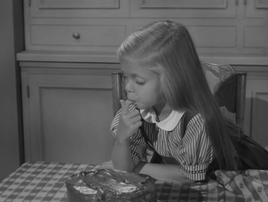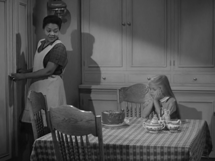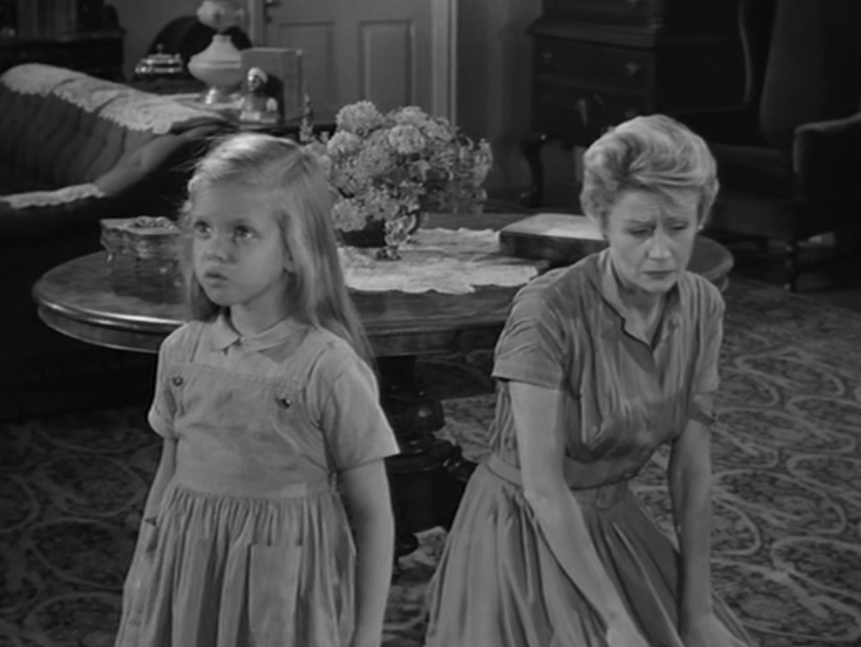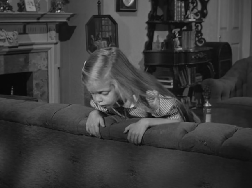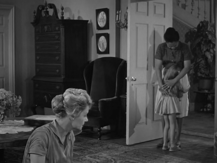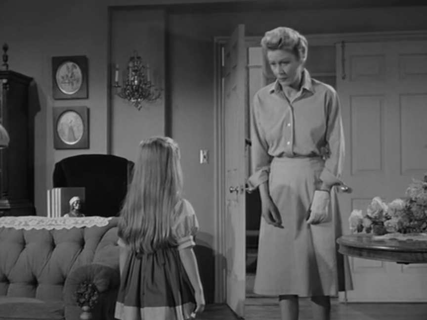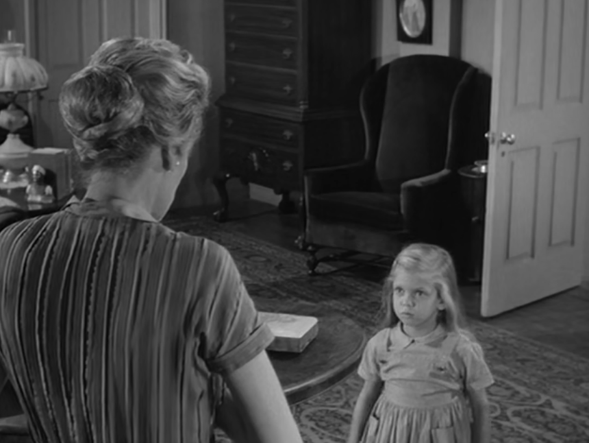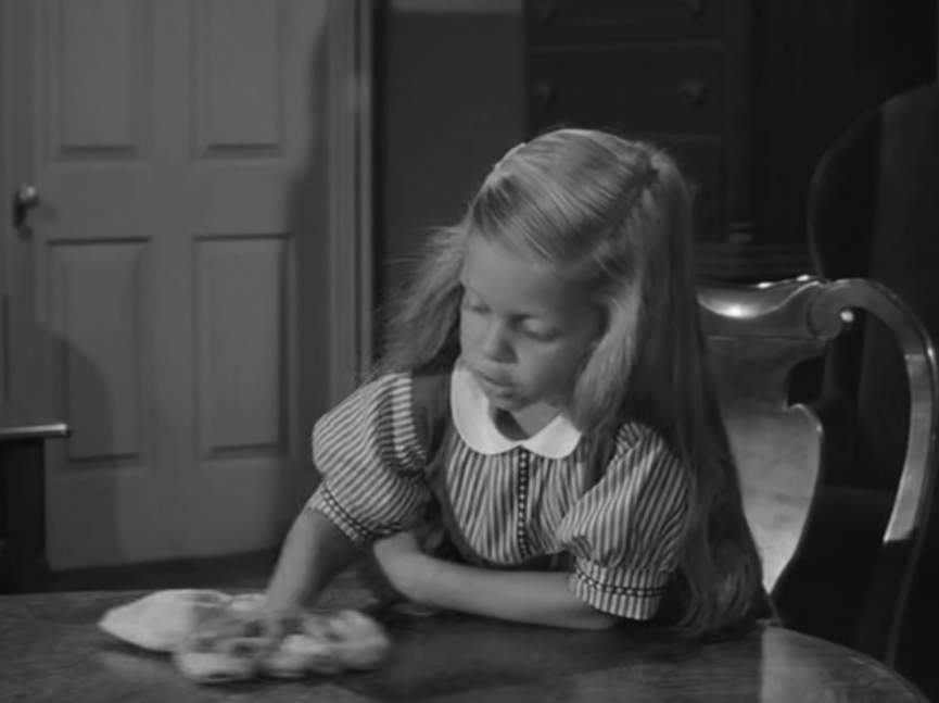 It likely served as the source for The Alfred Hitchcock Hour producers, featuring Grubb’s story “Where the Woodbine Twineth” along with “Return of Verge Likens,” his other contribution to the TV series. The story revolves around Nell and her five-year-old niece, Eva, whose parents are dead. Nell expresses concern over Eva’s penchant for playing with imaginary friends like Mr. Peppercorn while reading her solemn, serious literature.