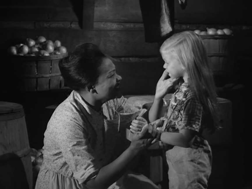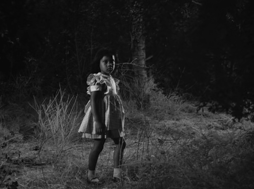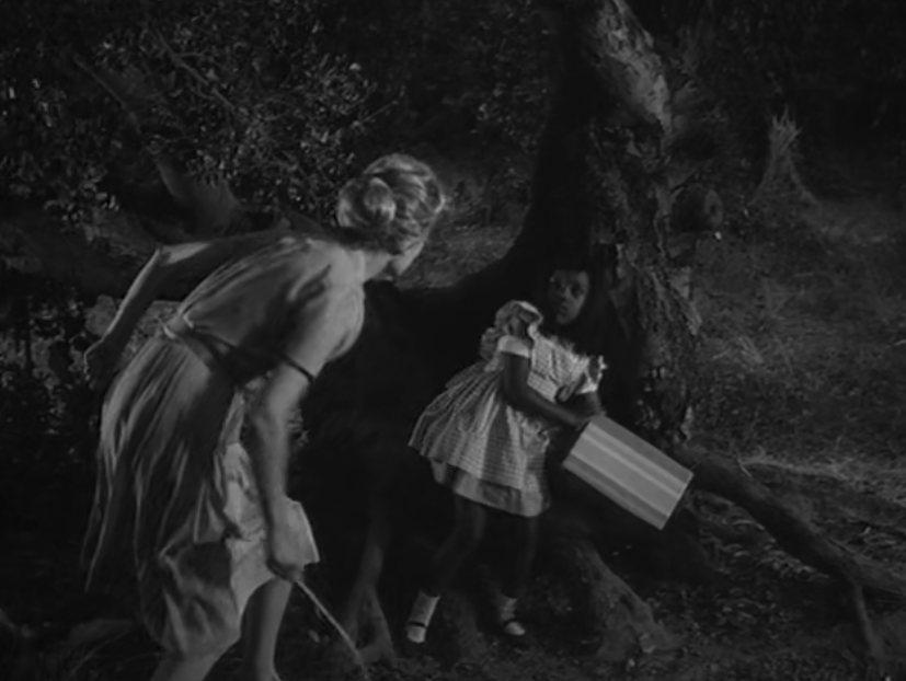 Nell wanders into a clearing and sees two girls, Eva, and a little black girl – Numa – playing together. The scene is shot in a way to disorient us. When Nell gets closer and comes face to face with Numa, she finds only her leaning over the doll box.