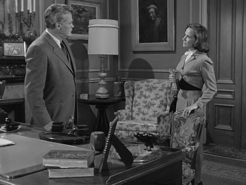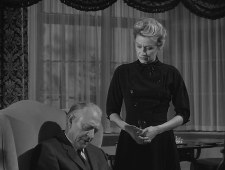 She was also in two other episodes of The Alfred Hitchcock Hour, as well as episodes of The Twilight Zone and Thriller’s Portrait Without a Face. Her husband, George Mitchell plays the judge and was also a busy character actor from 1935 to 1973. He appeared in four episodes of the Hitchcock series, including Forty Detectives Later and The Black Curtain. Like Squire, he could be seen on The Twilight Zone and Thriller; he also appeared in the classic western, 3:10 to Yuma, in 1957.