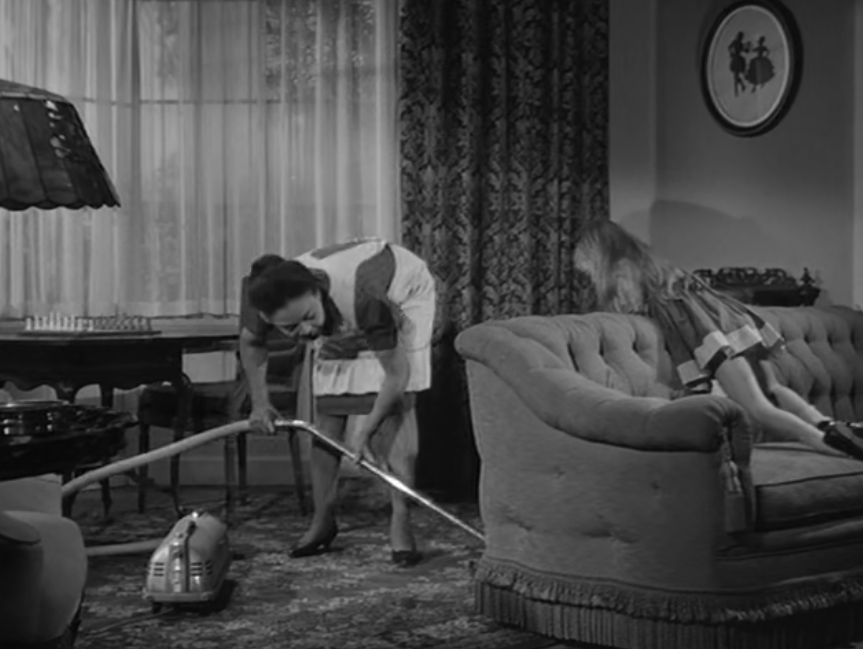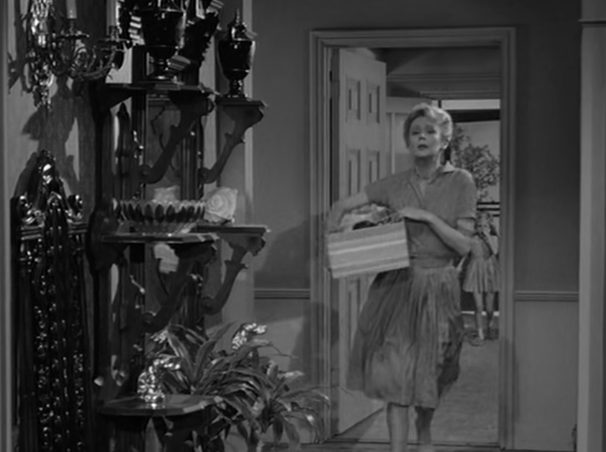 Of course, Nell at one point loses her patience and violently thrusts an umbrella underneath the Davenport to show Eva that there is no one there. She winds up breaking poor Sam’s leg.