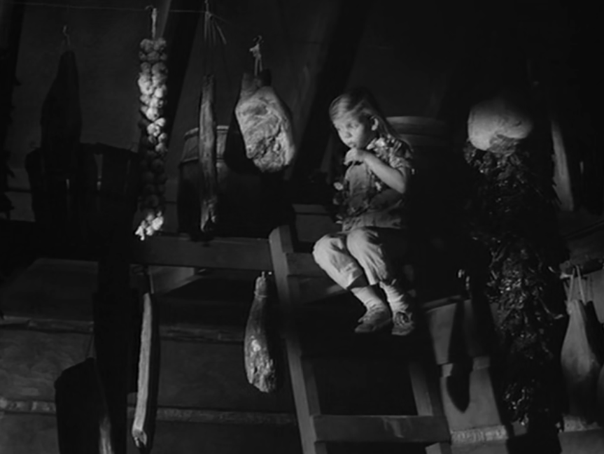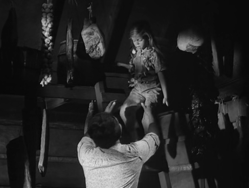 Later on, there’s a wonderful scene that illustrates Eva’s loving relationship with Suse that takes place In the smokehouse where Eva is hiding in the shadows of the loft. When Suse comes looking for her, Eva begins to whisper to her in a spooky voice, like a ghostly cartoon owl. Suse greets her with genuine affection. She has come to tell her that her grandfather has returned.