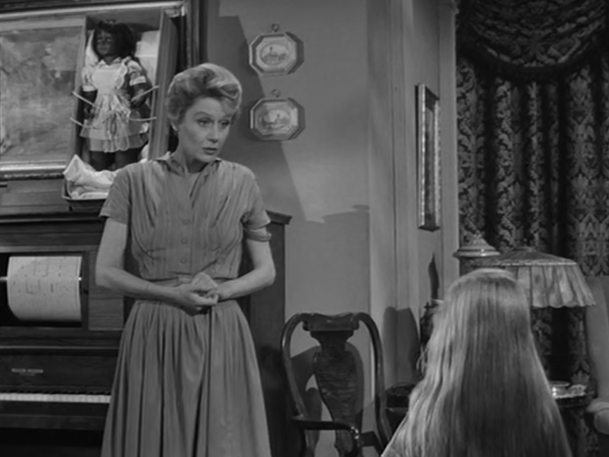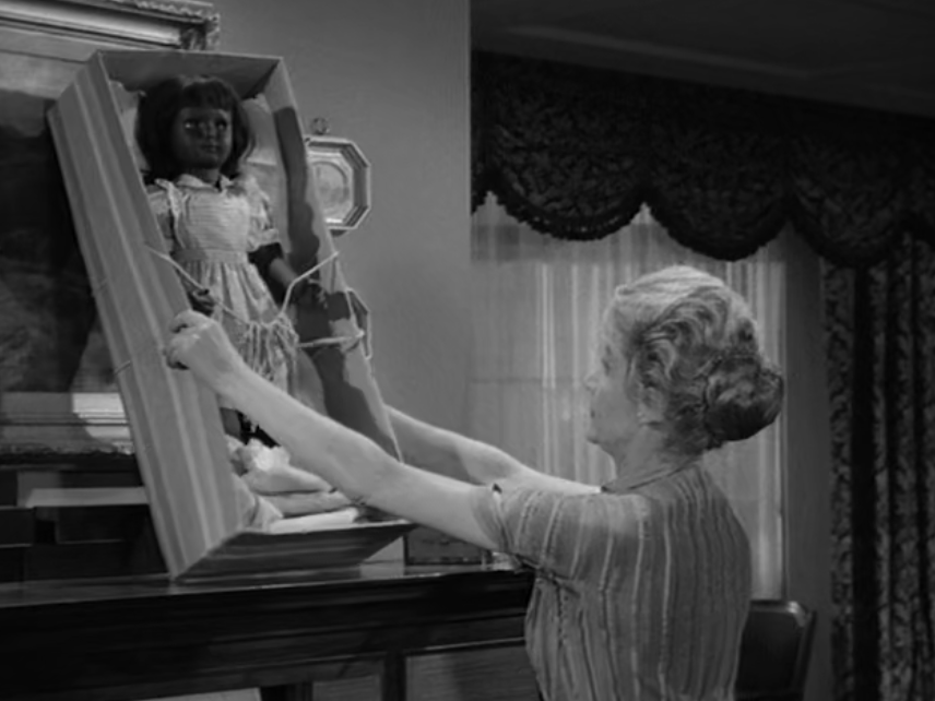 The revelation of the doppelgänger doll at the end of Where the Woodbine Twineth crystallizes the episode’s haunting exploration of loss, identity, and the uncanny. Leighton’s shock is not merely at the supernatural impossibility before her, but at the profound sadness of a child’s essence seemingly supplanted, an eerie echo of her niece’s fraying humanity. This moment sums up the devastating rupture between nurture and nature, highlighting how the fragile bonds of care can be painfully severed when faced with forces beyond comprehension. The doll, uncanny and silent, becomes a chilling testament to a transformation that is at once otherworldly and intimately tragic, a spectral reminder of innocence lost and the ineffectual grasp of those who yearn to protect. In this startling closure, Hitchcock leaves us suspended between disbelief and mourning, affirming that the deepest horrors often reside in the spaces where love and loss collide with the inexplicable. And Leighton pulls this off masterfully.