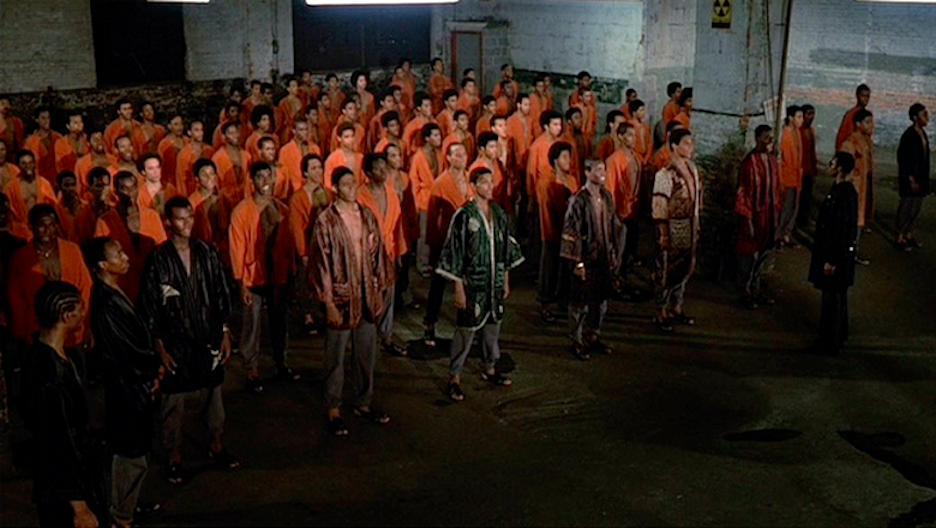 Through its flamboyant gang attire, the film embraces a heightened sense of reality and emphasizes their dangerous nature. This stylistic choice constantly reminds the audience of the movie’s departure from gritty realism, opting instead for a more theatrical and fantastical approach to urban warfare.
