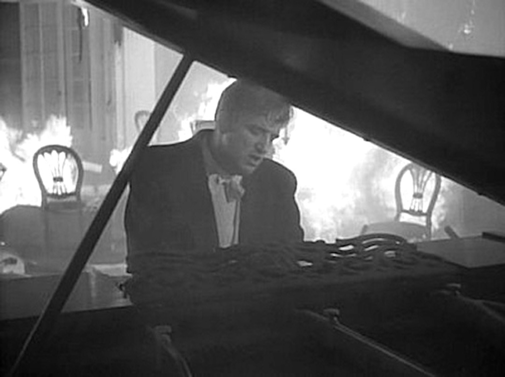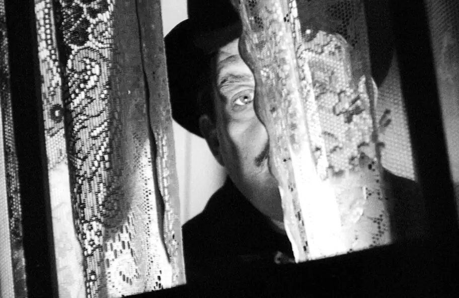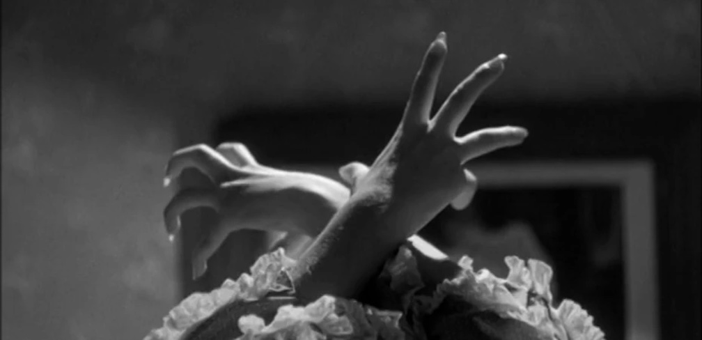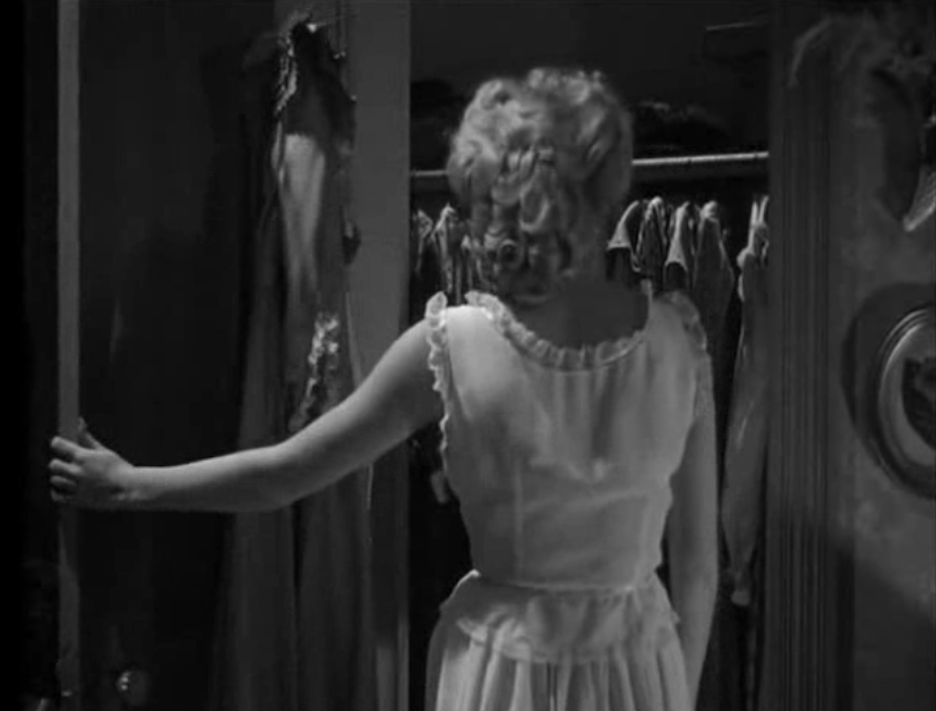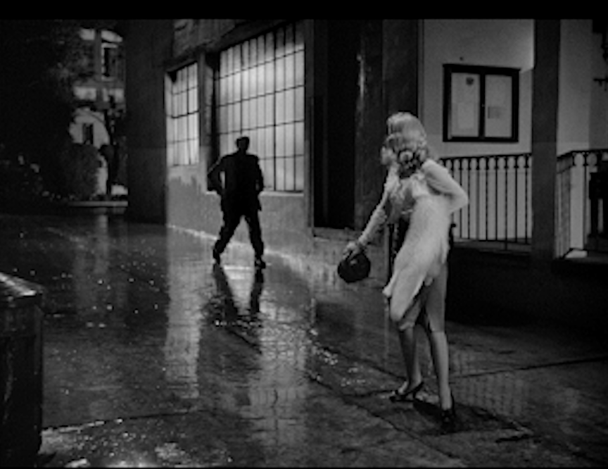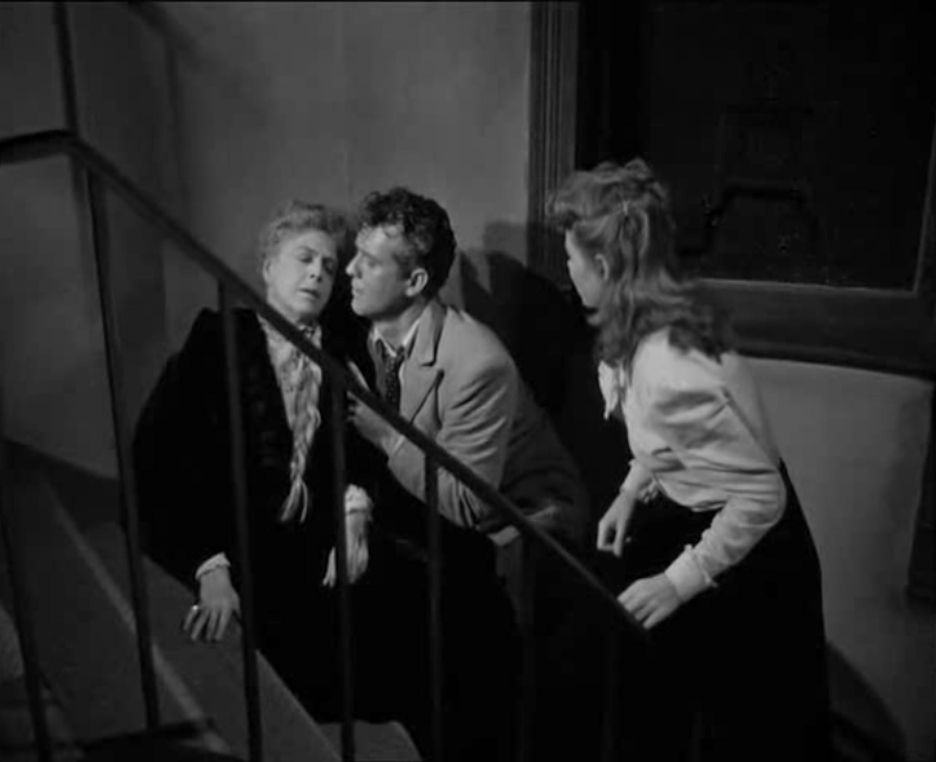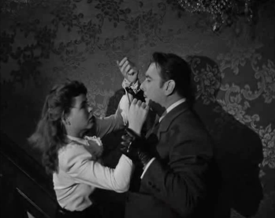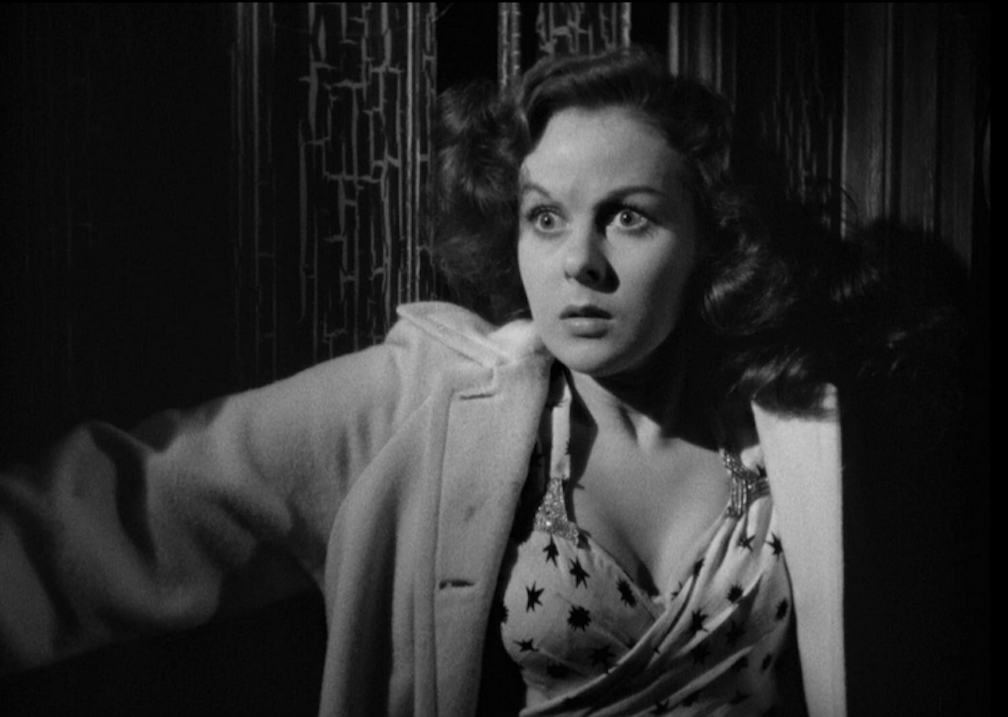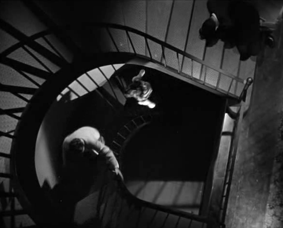 Peggy Nolan’s death is staged with noirish ambiguity and shades of fear. In the suffocating hush of the alley, Paul slips through the shadows behind Peggy, his presence barely more than a ripple in the night; the murder unfolds at the vanishing point of the camera’s gaze, so that her strangulation becomes a blur of desperate motion and unseen violence.