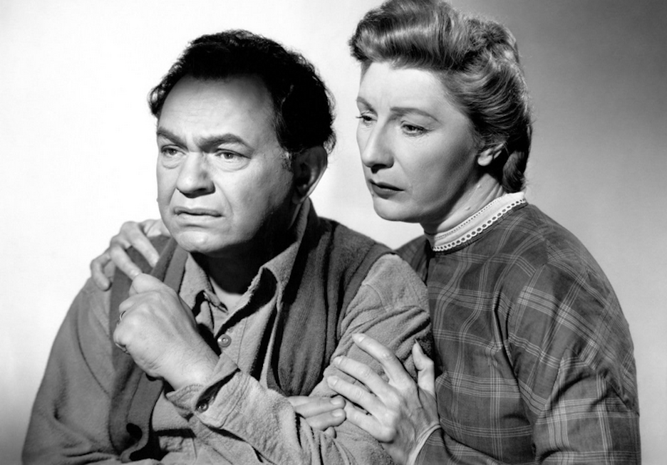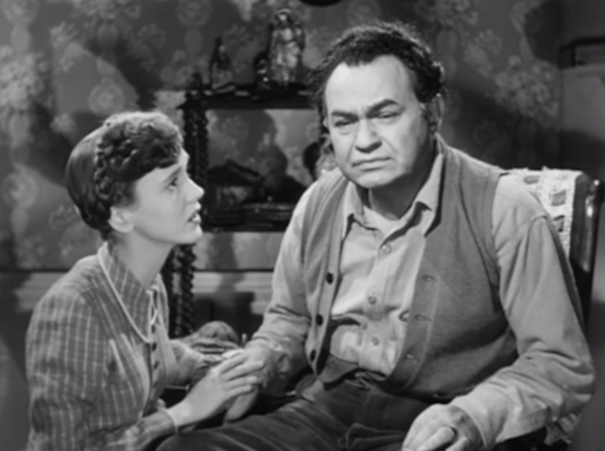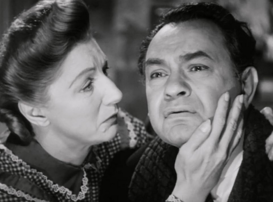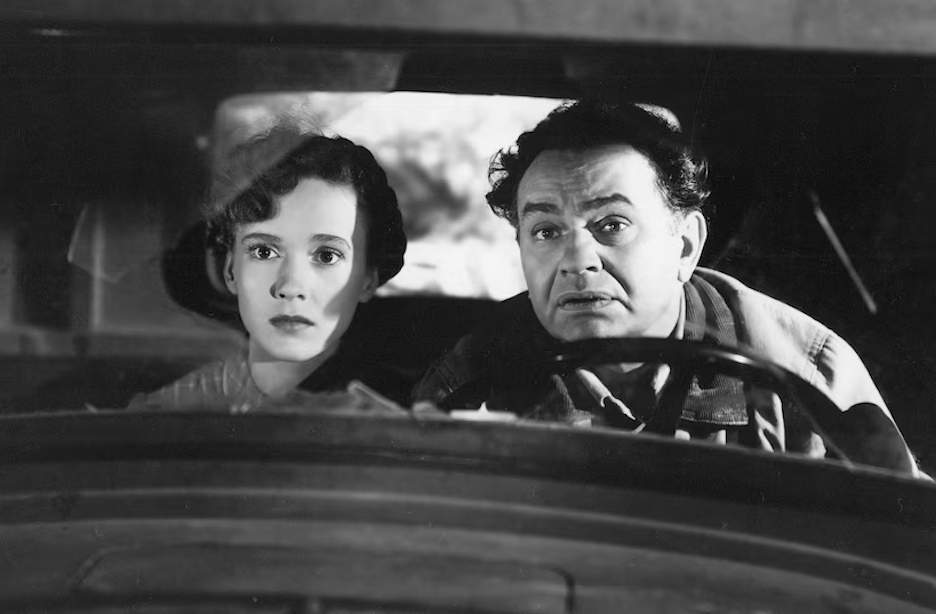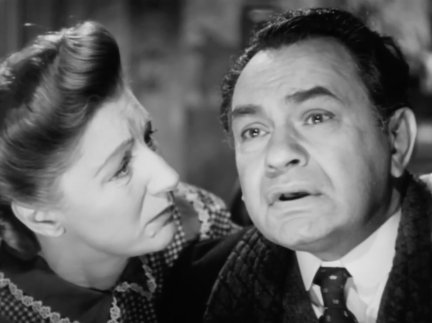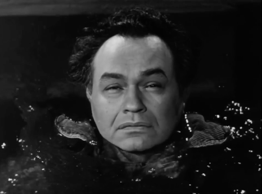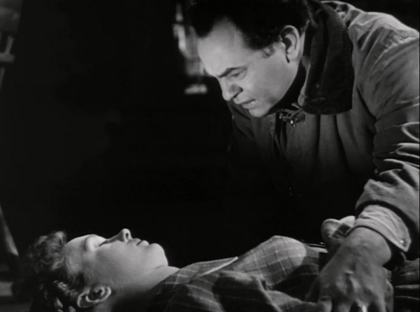 Pete’s breakdown, as he confuses Meg for Jeannie and nearly repeats his crime, is both horrifying and tragic—his final flight and death a desperate bid for release from his own haunted conscience. Edward G. Robinson, usually cast as urban toughies, brings a wounded, volatile gravity to Pete, making his descent into madness both pitiable and terrifying. Pete allows himself to be consumed by a watery grave.