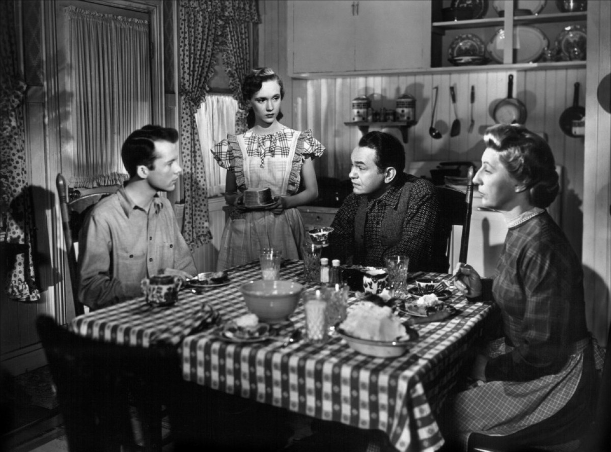 Judith Anderson’s Ellen is a study in stern loyalty and quiet suffering. “Judith Anderson, so menacing in Rebecca,’ underplays beautifully here and is perfectly convincing as Pete’s sister. It’s a sign of a great actress when she can be at home in Shakespeare and as a farmer’s sister.” – Glenn Erickson of CineSavant, 2012 review.