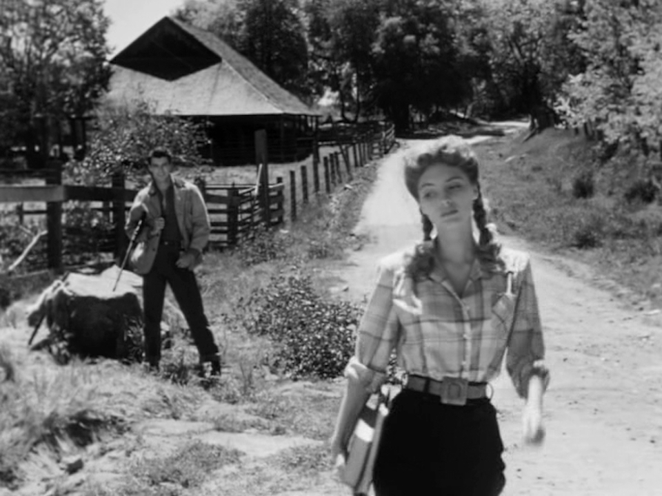 Meanwhile, Pete resorts to every tactic to keep Meg close and drive Nath away—showering Meg with gifts, issuing threats, and even encouraging Nath’s romance with Tibby. Determined to protect his hold over Meg, he enlists Teller (Rory Calhoun), the local troublemaker, to use violence and keep both Nath and Meg out of Ox-Head Woods. Pete’s desperation makes it clear he will stop at nothing to maintain control.