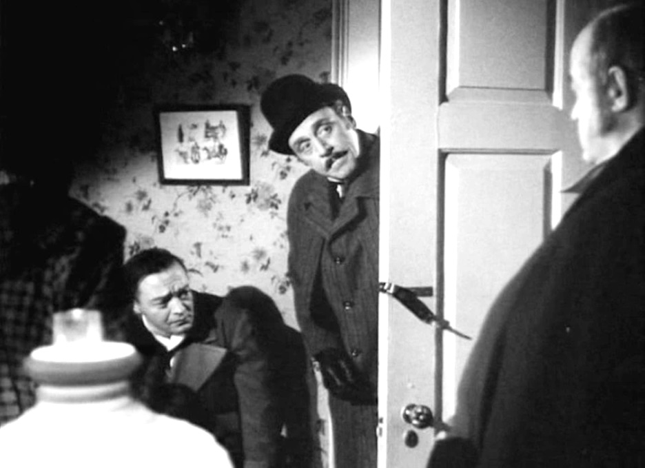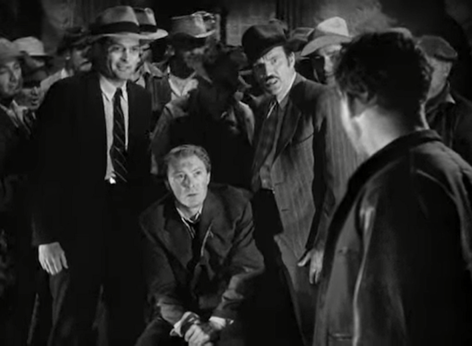 The town, already on edge, is thrown into panic by the murder. Suspicion and fear mount as the murders of Pompey and Peggy are linked in the newspapers, prompting Bill Oakley (Gordon Jones), a resident of the Pickens’ boardinghouse and a disenfranchised ex-soldier, to form a vigilante group to go on a hunt. The mob is convinced that brother John—who looks identical to Paul—is the killer.