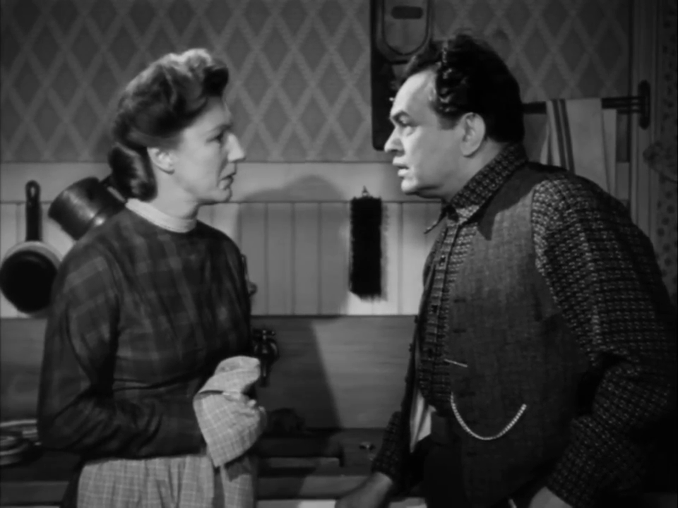 Nath’s (Lon McCallister) arrival stirs change in the Morgan household, challenging Pete’s authority and deepening his possessiveness over Meg. During a quiet, emotionally charged conversation at the Morgan farmhouse, Ellen and Pete are discussing Meg’s future and well-being. Ellen urges Pete to let Meg have a chance at happiness and companionship with someone her own age, arguing that Meg deserves more than a life of isolation on the farm.