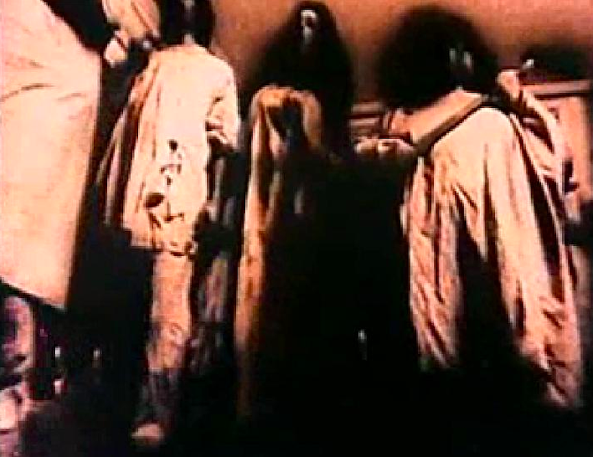 The film’s centerpiece is its chilling flashback portrayed in sepia tones, showing the asylum inmates silently surrounding and murdering the doctors, an eerie sequence loaded with the spectral presence of Warhol superstars as patients and party guests. This breakout scene embodies the film’s blend of psychological horror, social critique, and surreal theatricality.